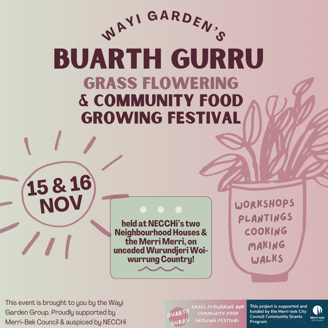 Celebrating the Wurundjeri season of Buarth Gurru (grass flowering) and community food growing.